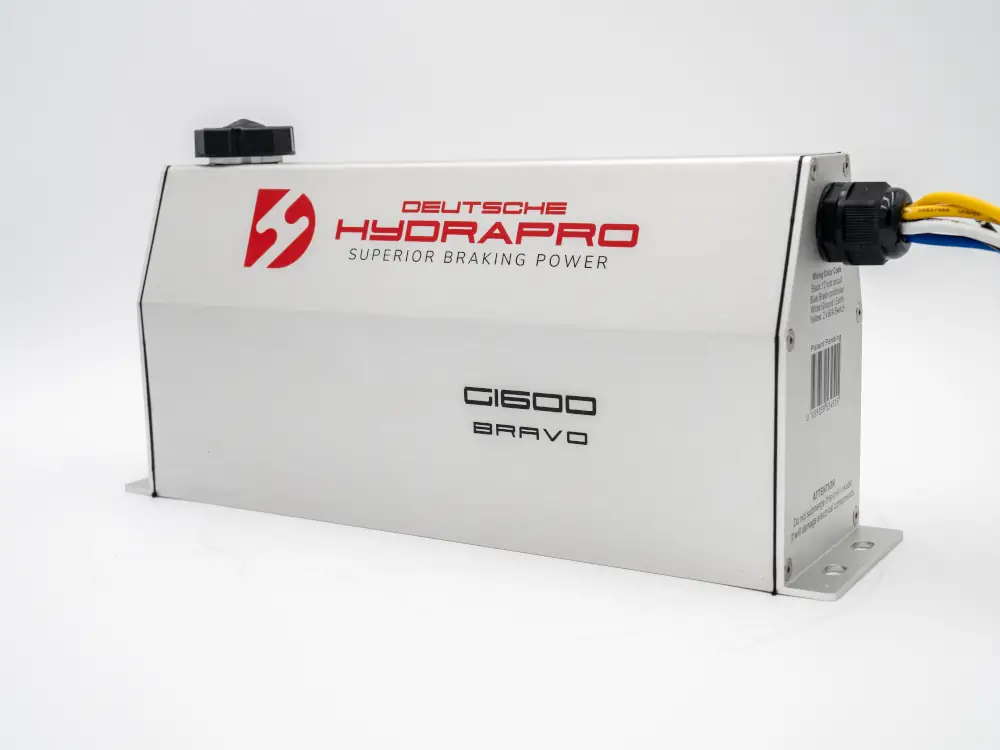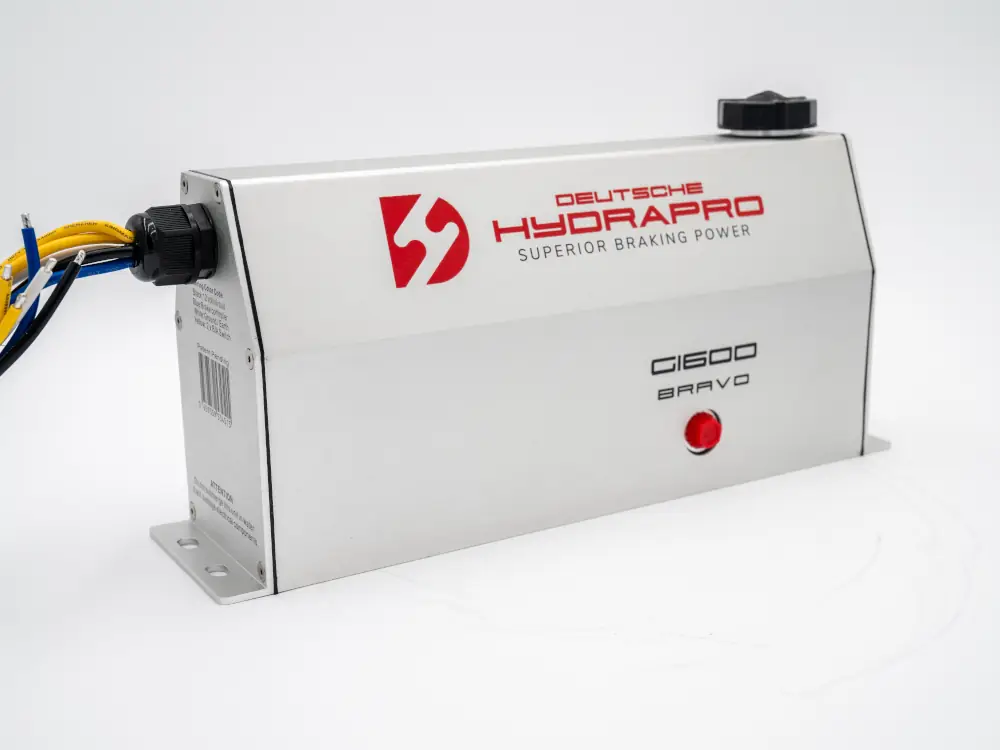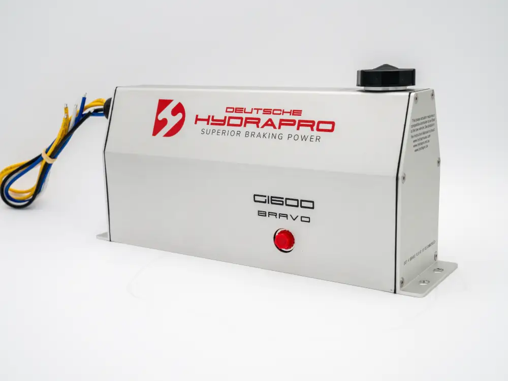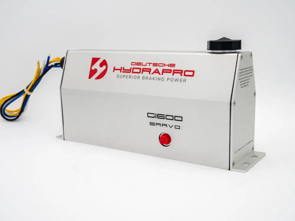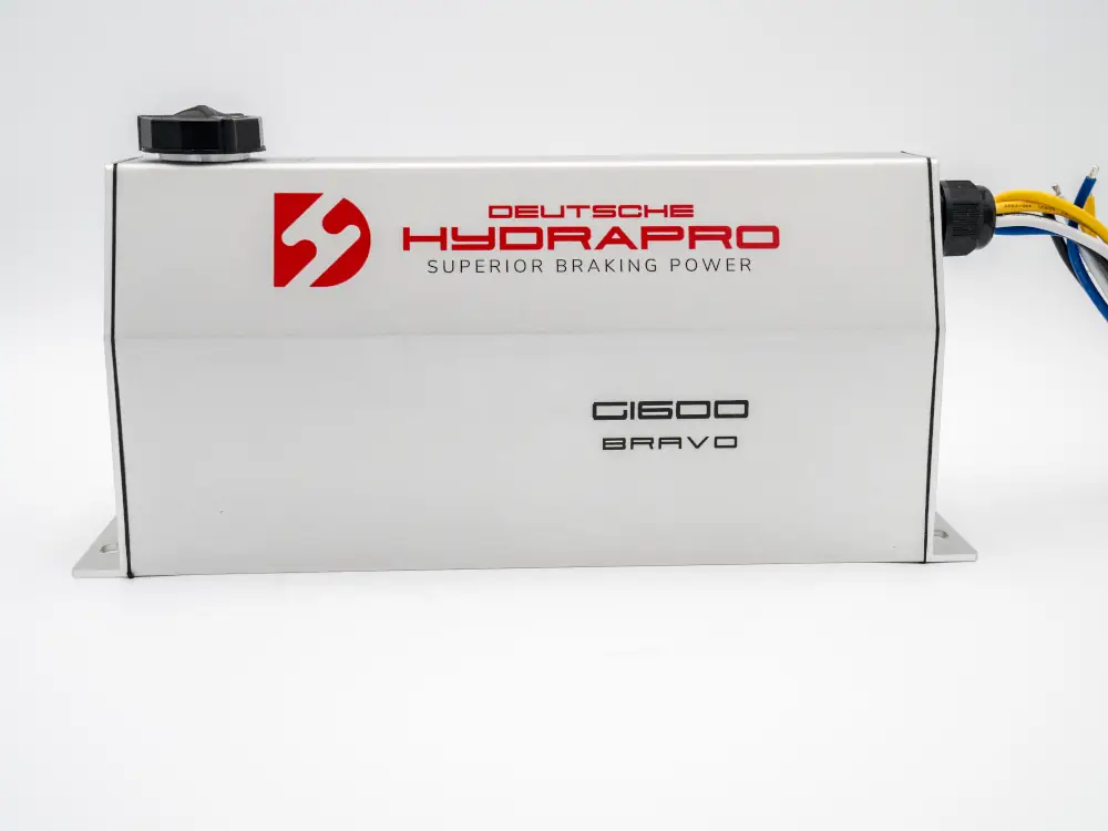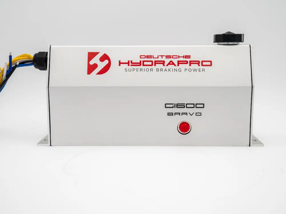 The Alpha G-1600, electric over hydraulic brake actuator with its sleek and modern design, was created with high-quality standards to withstand even the harshest conditions. Its compact size allows for easy installation, and brake line fitting with 360 degrees of movement is included to connect your brake line from all mounting positions. In addition, all Deutsche Hydrapro 1600psi brake actuators have a swift response time, reaching 1,000 psi in 0.118 seconds.